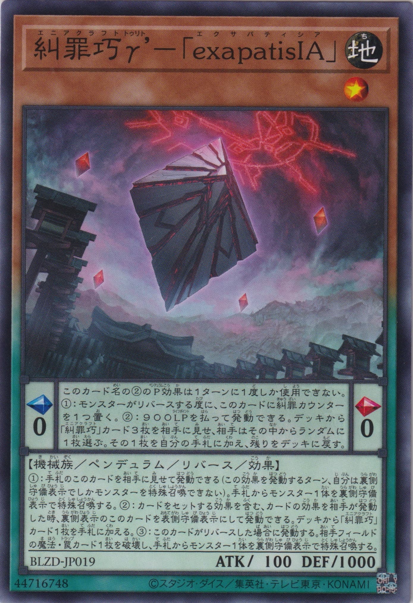 0 このカード名の②のP効果は1ターンに1度しか使用できない。 ①:モンスターがリバースする度に、このカードに糾罪カウンターを1つ置く。 ②:900LPを払って発動できる。デッキから「糾罪巧」カード3枚を相手に見せ、相手はその中からランダムに1枚選ぶ。その1枚を自分の手札に加え、残りをデッキに戻す。