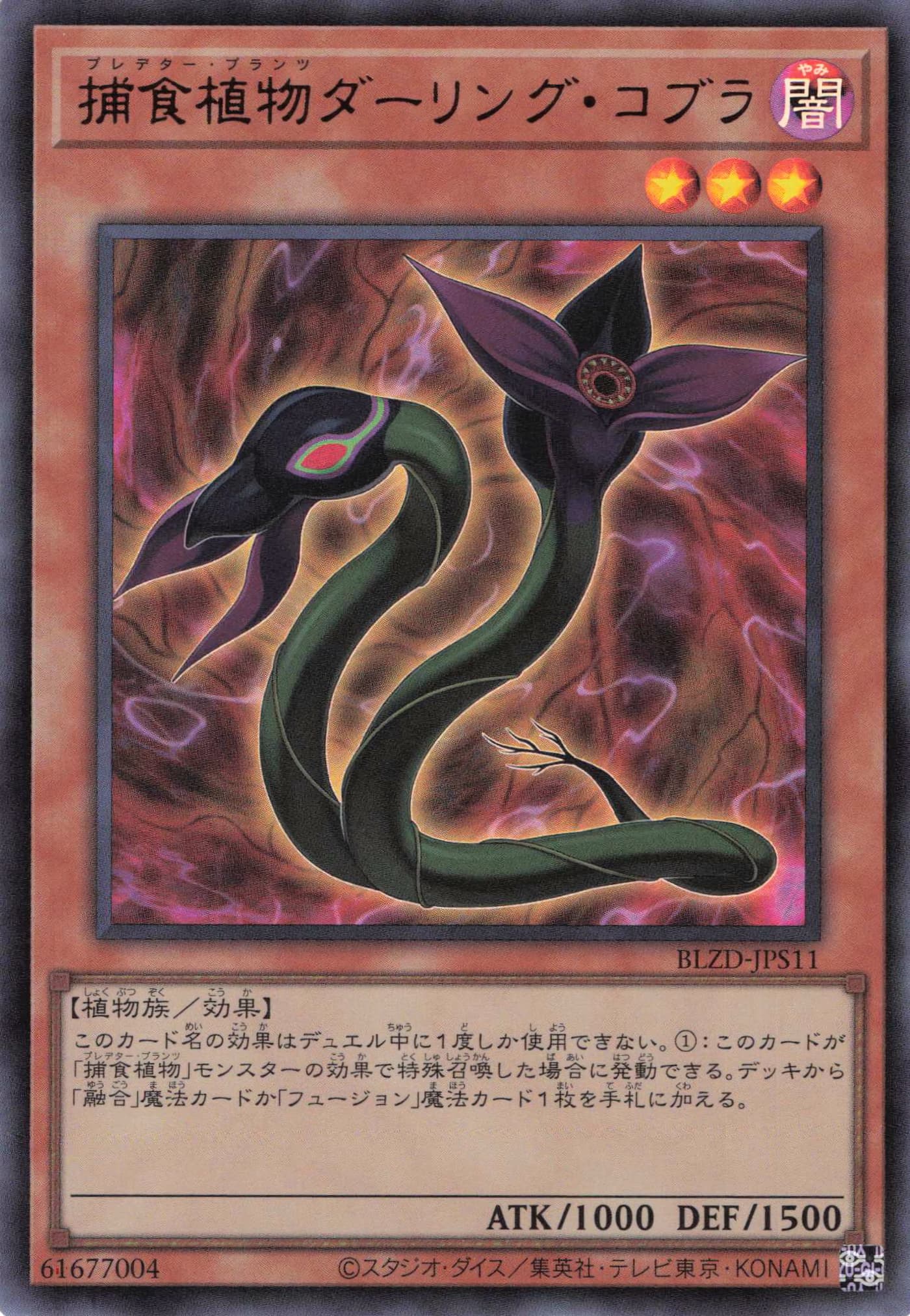 このカード名の効果はデュエル中に1度しか使用できない。 ①:このカードが「捕食植物」モンスターの効果で特殊召喚した場合に発動できる。デッキから「融合」魔法カード「フュージョン」魔法カード1枚を手札に加える。