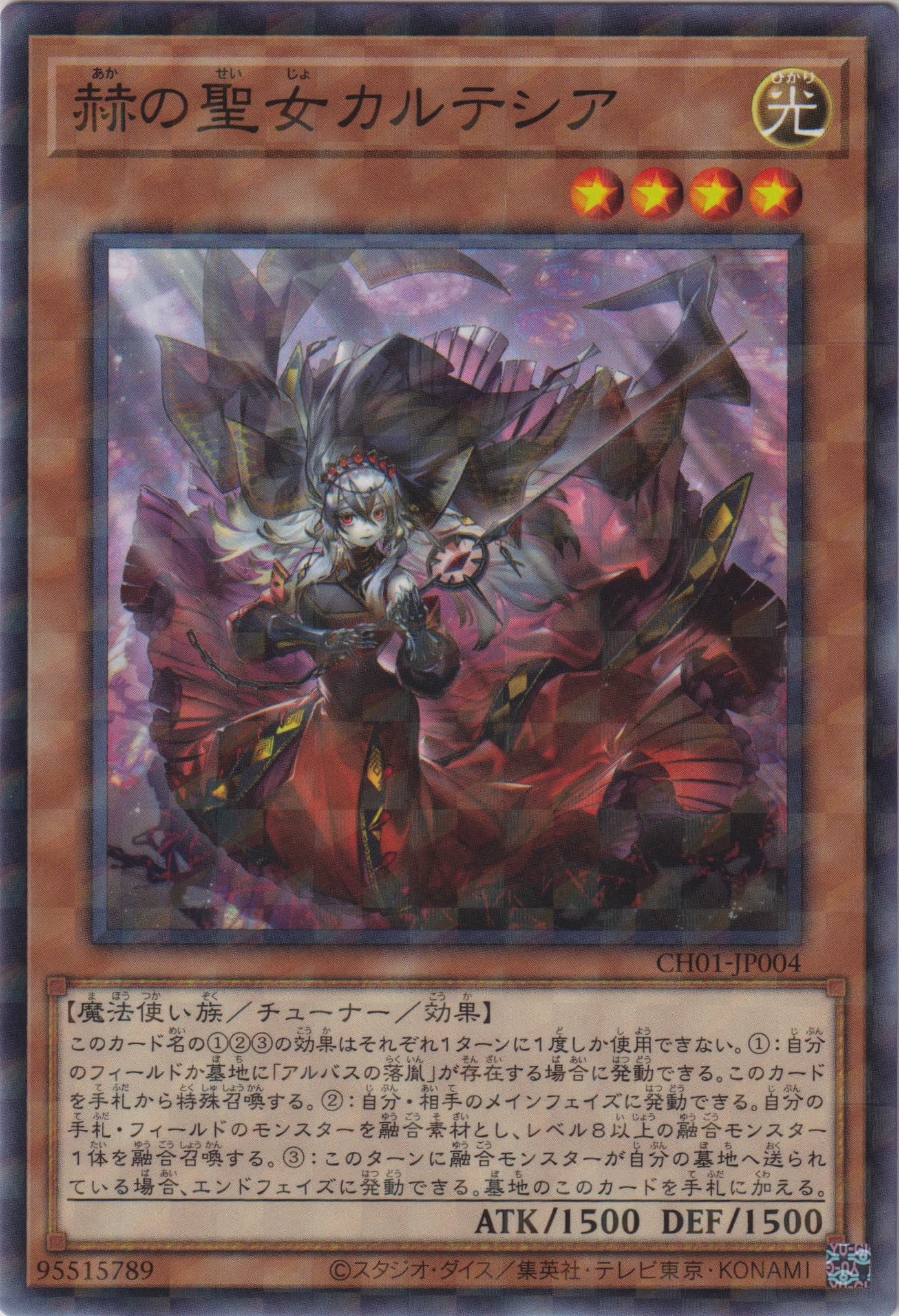 チューナー+チューナー以外のモンスター1体以上 このカード名の①②の効果はそれぞれ1ターンに1度しか使用できない。 ①:自分・相手のメインフェイズに発動できる。このカードをエンドフェイズまで除外し、自分のデッキ・墓地から「アルバスの落胤」またはそのカード名が記されたレベル4以下のモンスター1体を特殊召喚する。 ②:このカードが墓地に存在する場合、自分の墓地・除外状態のレベル8融合モンスター1体とフィールドのカード1枚を対象として発動できる。そのカード2枚とこのカードをデッキに戻す。