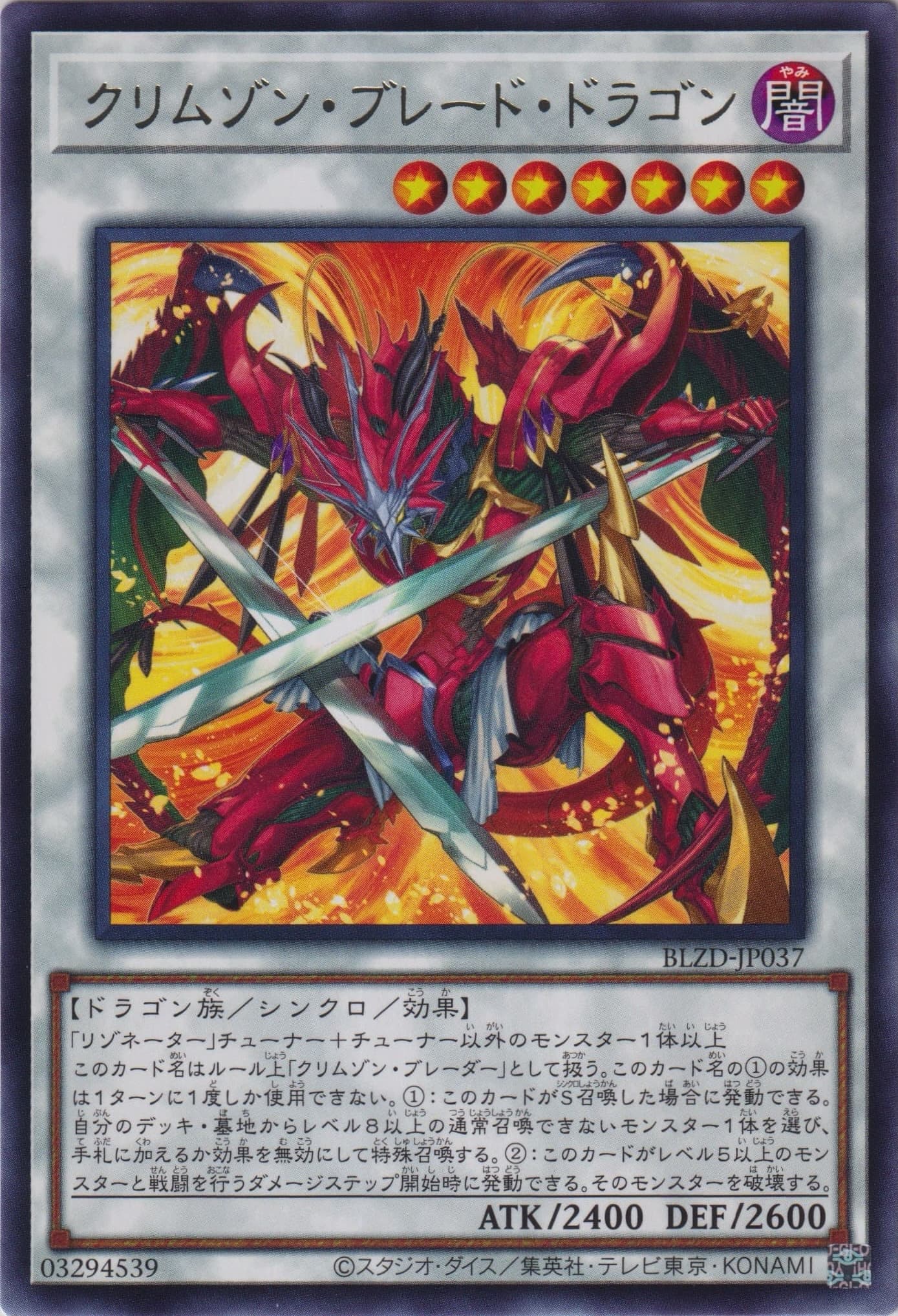 | BLZD-JP037 | クリムゾン・ブレード・ドラゴン | シンクロ/効果 | photoレア | 収録/公式/Wiki | ||||