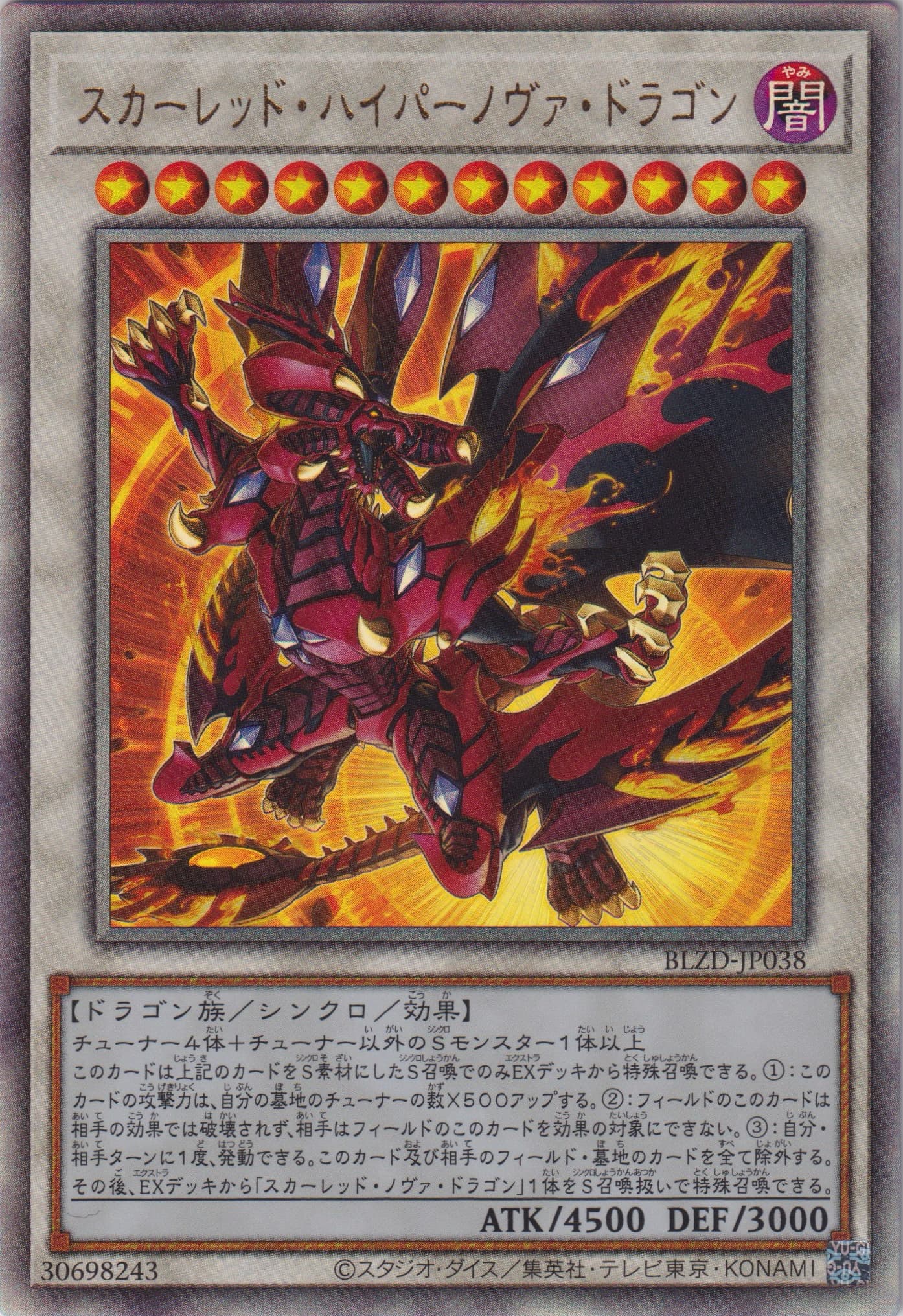 | BLZD-JP038 | スカーレッド・ハイパーノヴァ・ドラゴン | シンクロ/効果 | photoアルティメット photoシークレット photoプリズマティックシークレット |