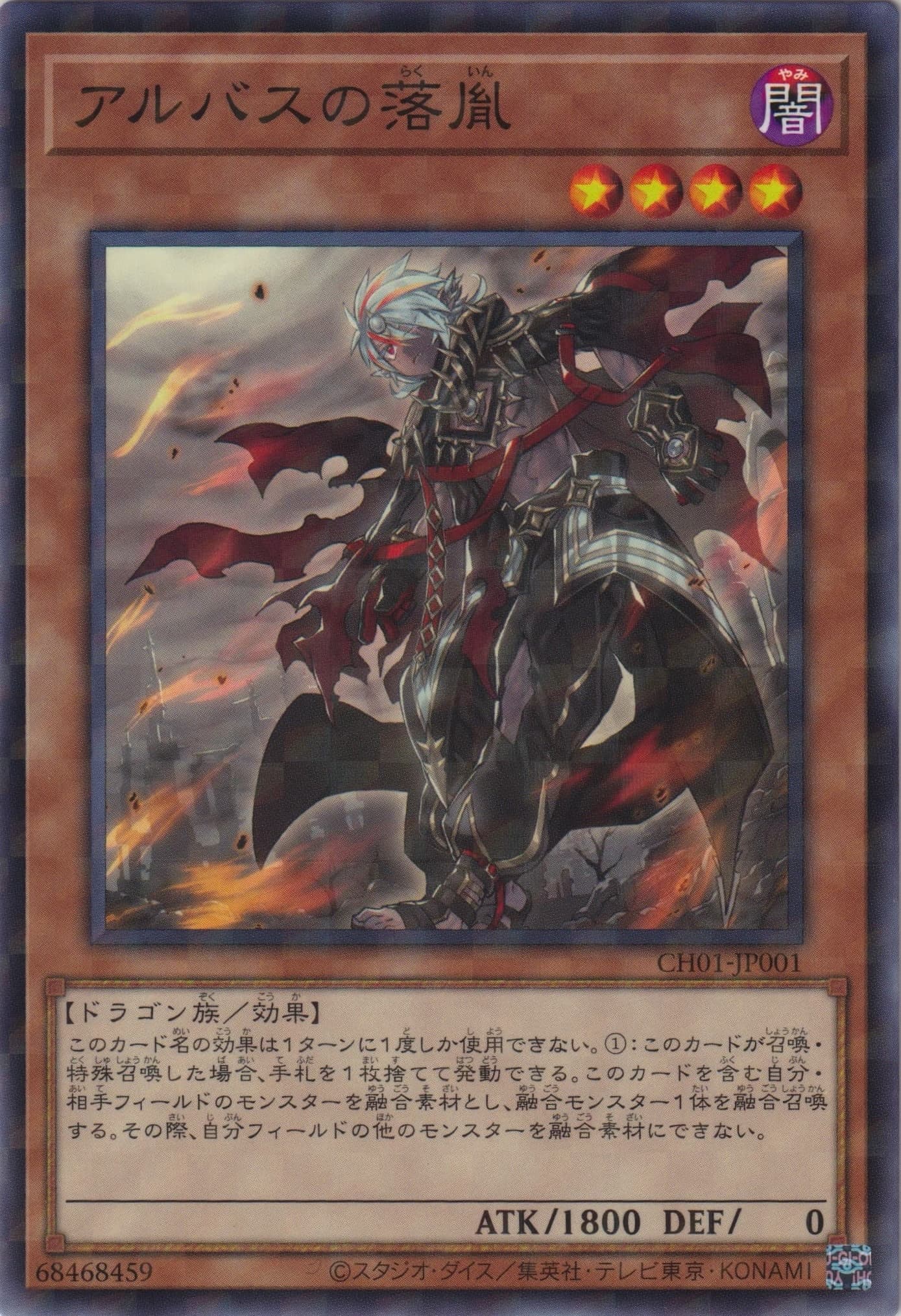 | このカード名の①②③の効果はそれぞれ1ターンに1度しか使用できない。 ①:自分のフィールドか墓地に「アルバスの落胤」が存在する場合に発動できる。このカードを手札から特殊召喚する。 ②:自分・相手のメインフェイズに発動できる。自分の手札・フィールドのモンスターを融合素材とし、レベル8以上の融合モンスター1体を融合召喚する。 ③:このターンに融合モンスターが自分の墓地へ送られている場合、エンドフェイズに発動できる。墓地のこのカードを手札に加える。 | ||||||||