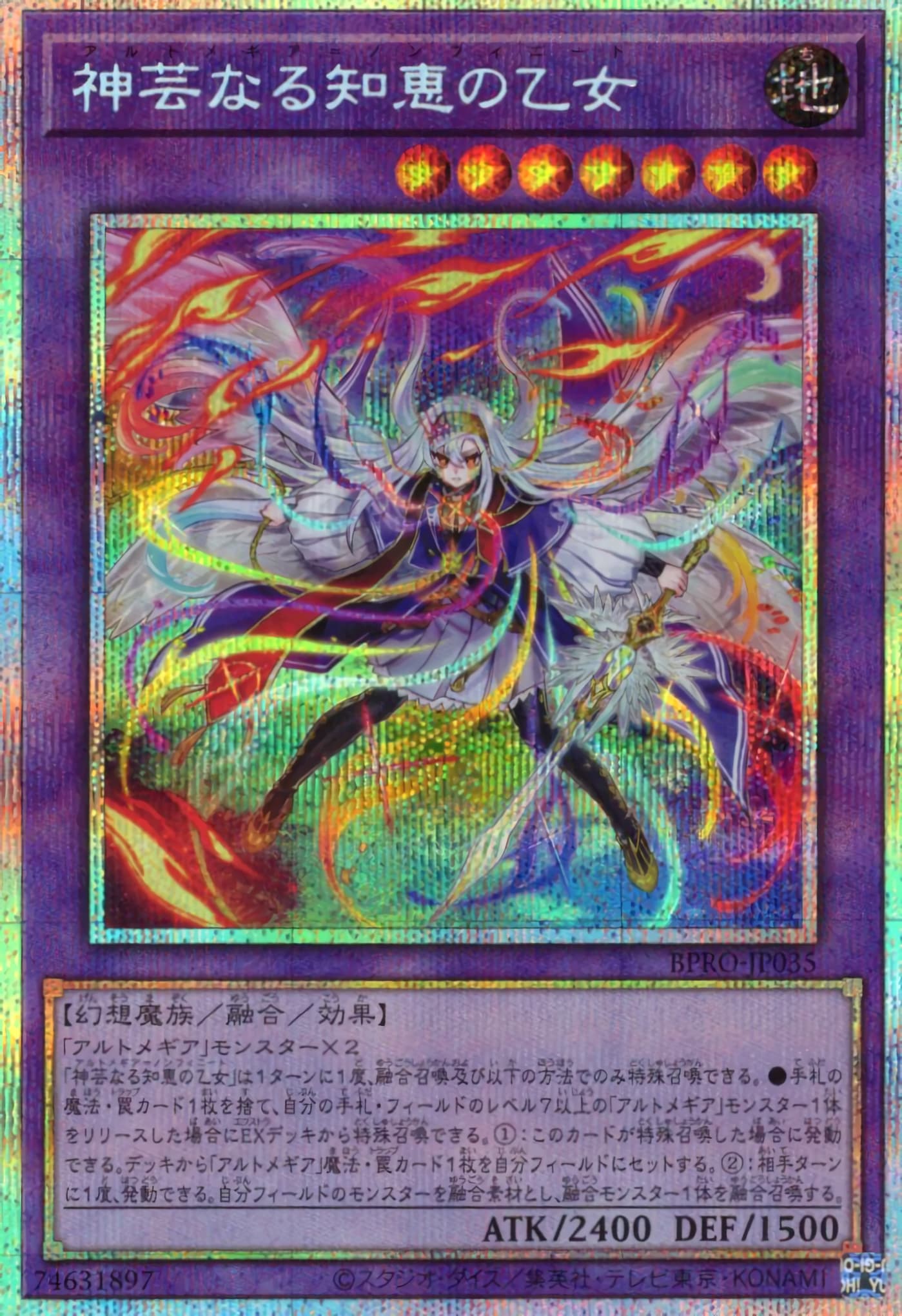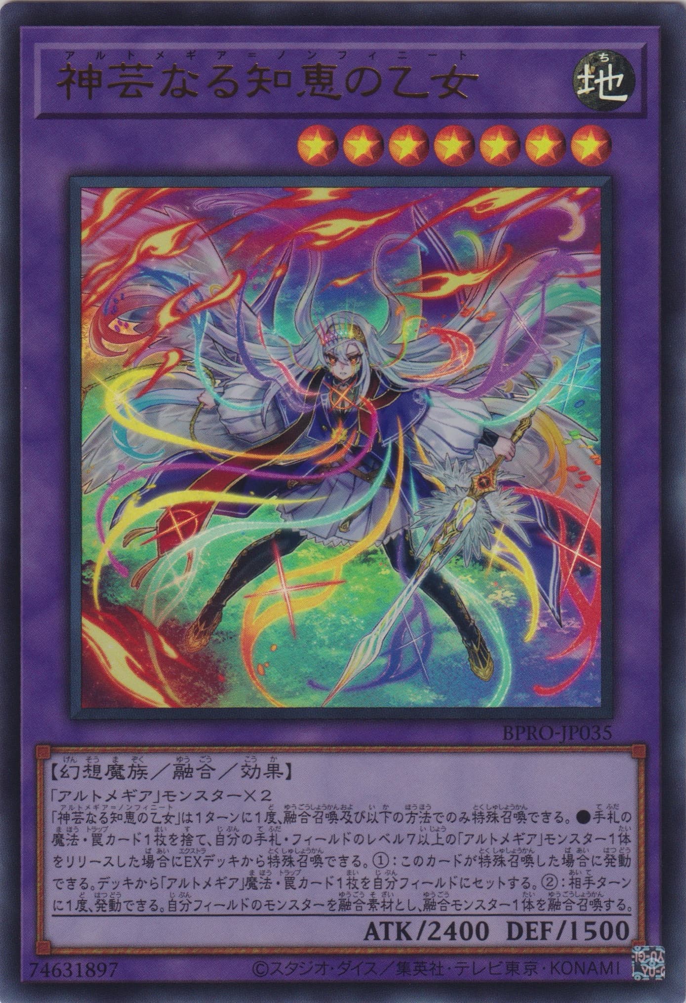 | BPRO-JP035 | アルトメギア=ノンフィニート神芸なる知恵の乙女 | 融合/効果 | photoウルトラ photoプリズマティックシークレット | 収録/公式/Wiki | ||||
