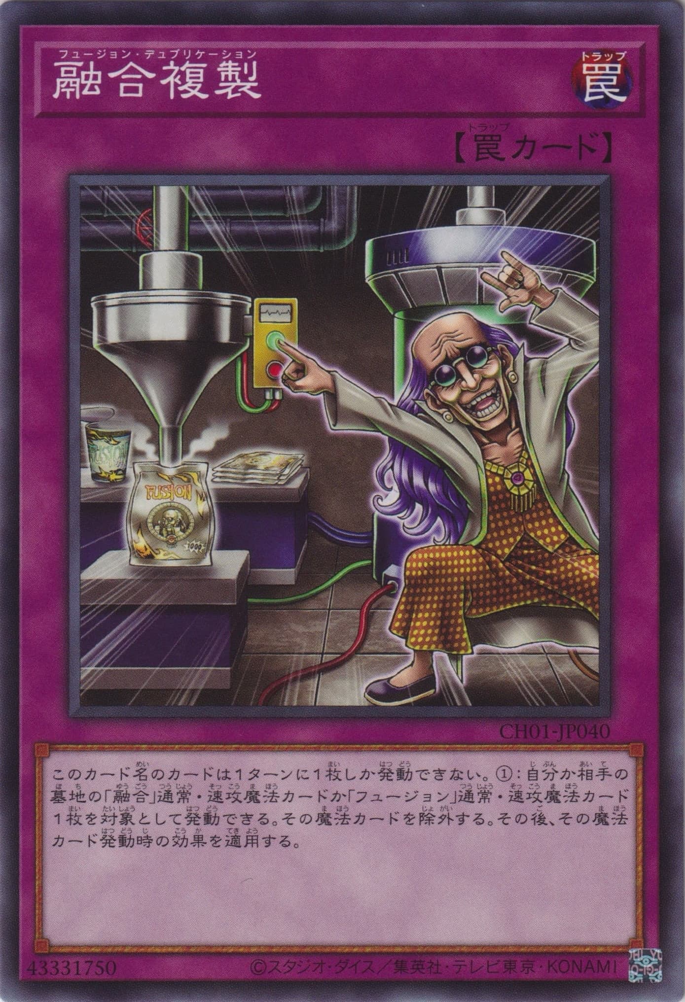 このカード名のカードは1ターンに1枚しか発動できない。 ①:自分か相手の墓地の「融合」通常速攻魔法カード「フュージョン」通常速攻魔法カード1枚を対象として発動できる。その魔法カードを除外する。その後、その魔法カード発動時の効果を適用する。