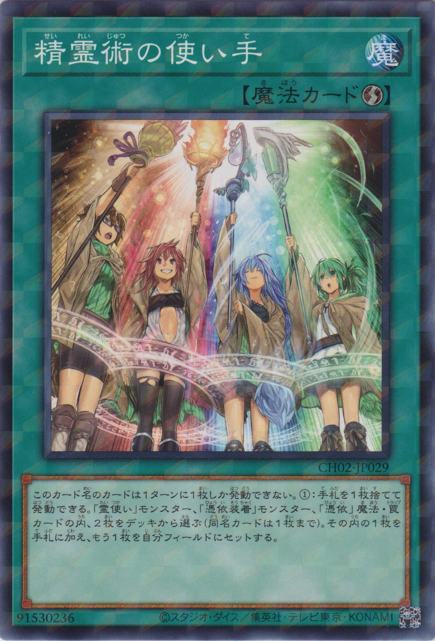 このカード名の①②の効果はそれぞれ1ターンに1度しか使用できない。 ①:自分の魔法使い族モンスターが相手モンスターと戦闘を行う自分・相手ターンのダメージ計算時に発動できる。カード名が異なる手札の魔法カードを任意の数だけ相手に見せ、その自分のモンスターの攻撃力・守備力をターン終了時まで、見せた数×1000アップする。 ②:自分・相手ターンに、手札から魔法カード1枚を捨てて発動できる。相手フィールドの全ての表側表示モンスターの効果はターン終了時まで無効化される。