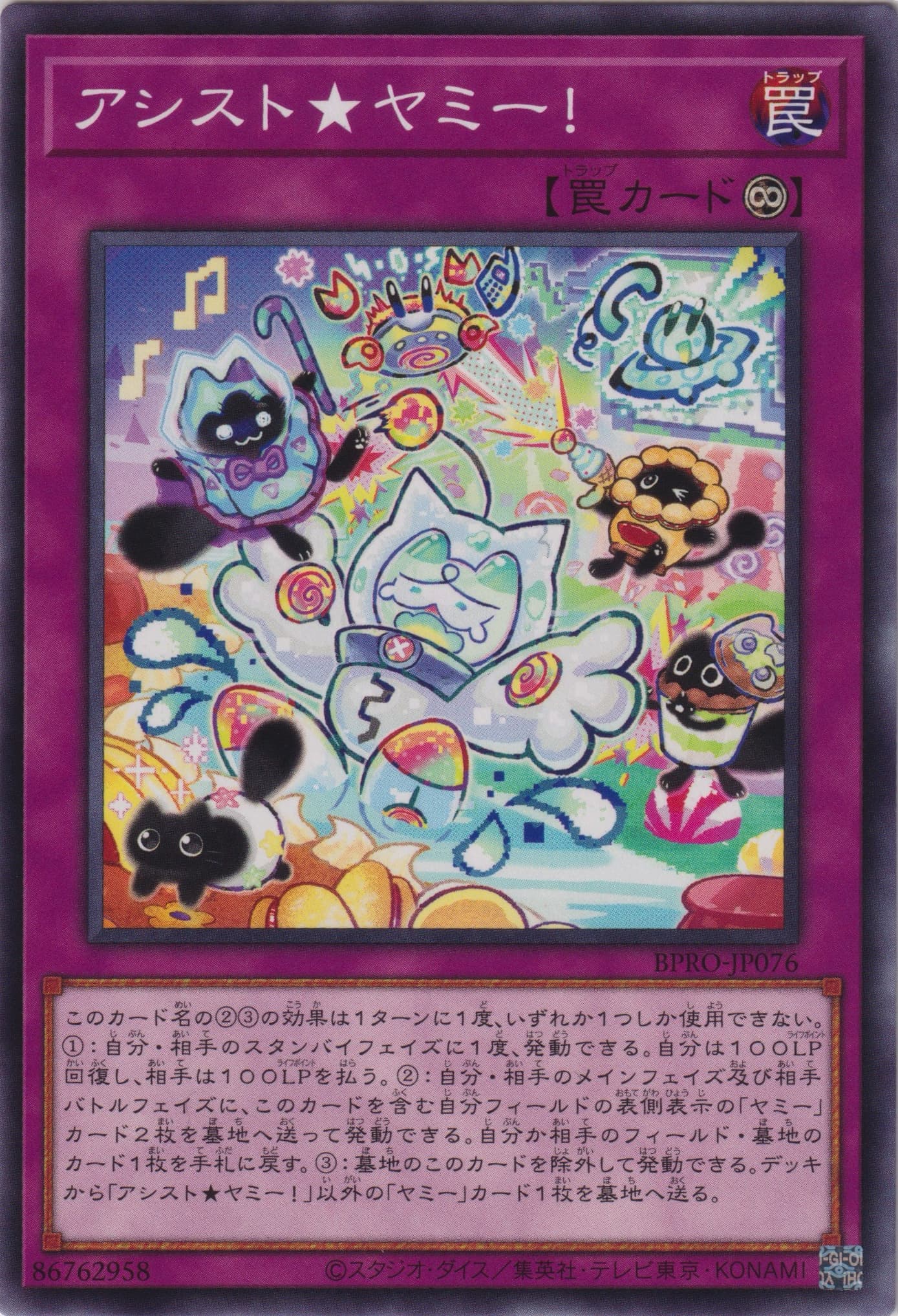 | BPRO-JP076 | アシスト★ヤミー! | 永続罠 | photoノーマル | 収録/公式/Wiki | ||||