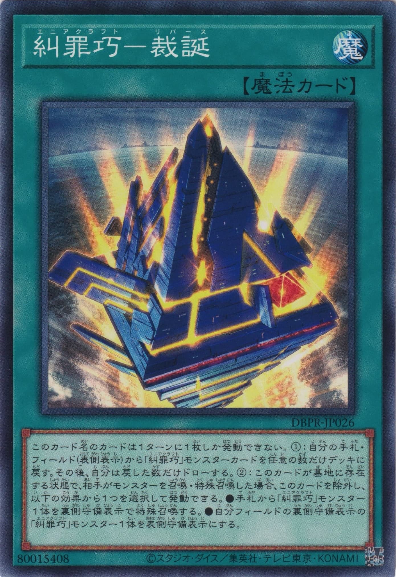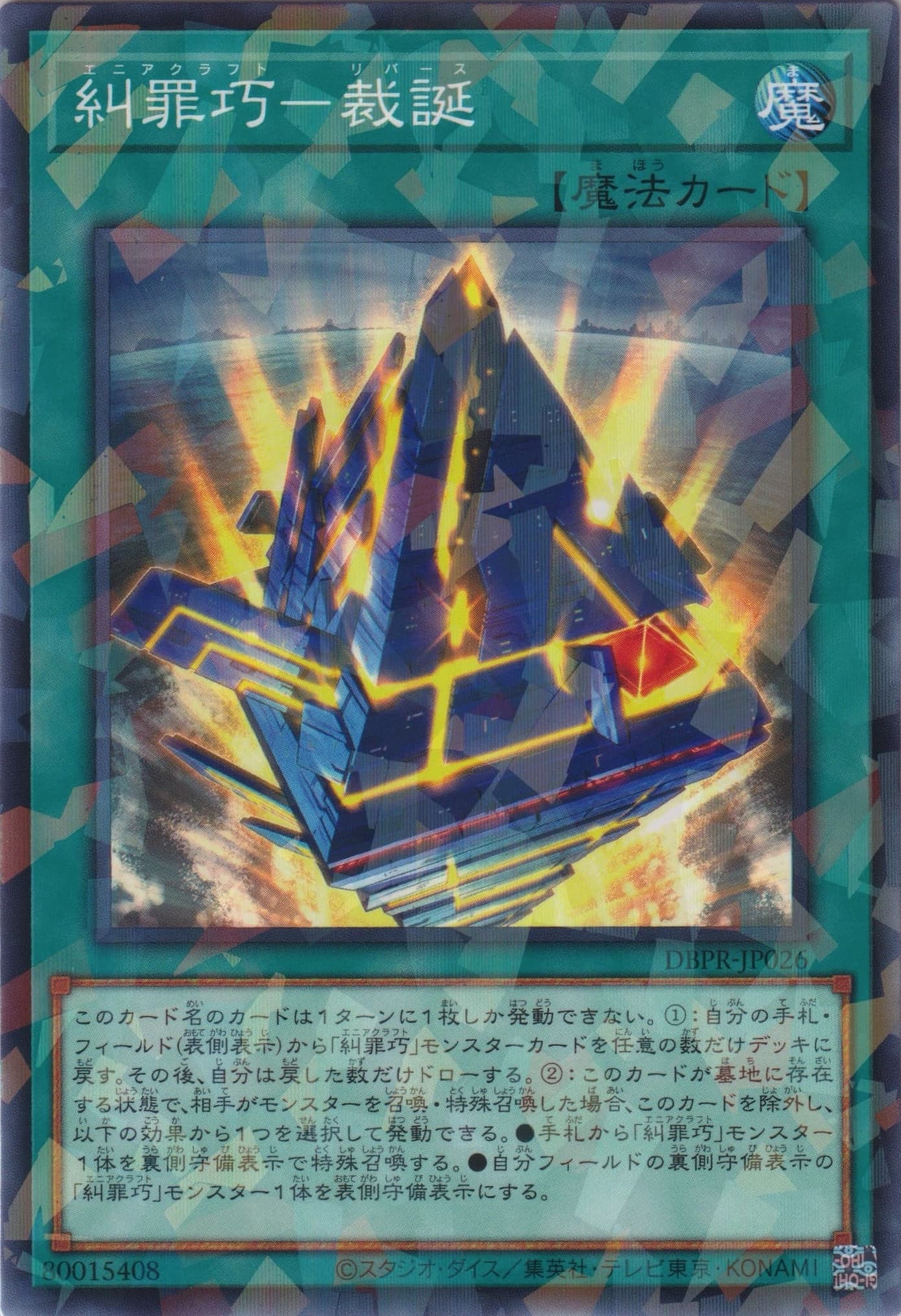 ①:手札のこのカードを相手に見せて発動できる(この効果を発動するターン、自分は裏側守備表示でしかモンスターを特殊召喚できない)。手札からモンスター1体を裏側守備表示で特殊召喚する。 ②:モンスターを特殊召喚する効果を含む、カードの効果を相手が発動した時、裏側表示のこのカードを表側守備表示にして発動できる。デッキから「糾罪巧」カード1枚を手札に加える。 ③:このカードがリバースした場合に発動する。相手フィールドの効果モンスター1体の効果をターン終了時まで無効にする。 | ||||||||